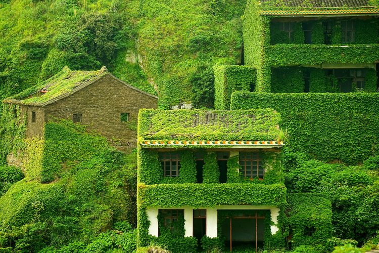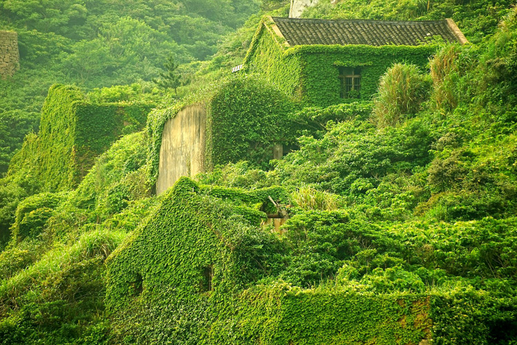 This group of islands is the largest in China, where fishing had long been a prominent industry. However, over the years the economy has grown to rely on a more diverse base of industries, which eliminated the need for widespread fishing practices. As a result, Gouqi island—a community of mostly fishermen—is now abandoned and has been overtaken by a green wall of moss, leaves and thick vines. The village has been transformed into a masterpiece of climbing abandoned buildings shrouded by nature and nestled into the coast.