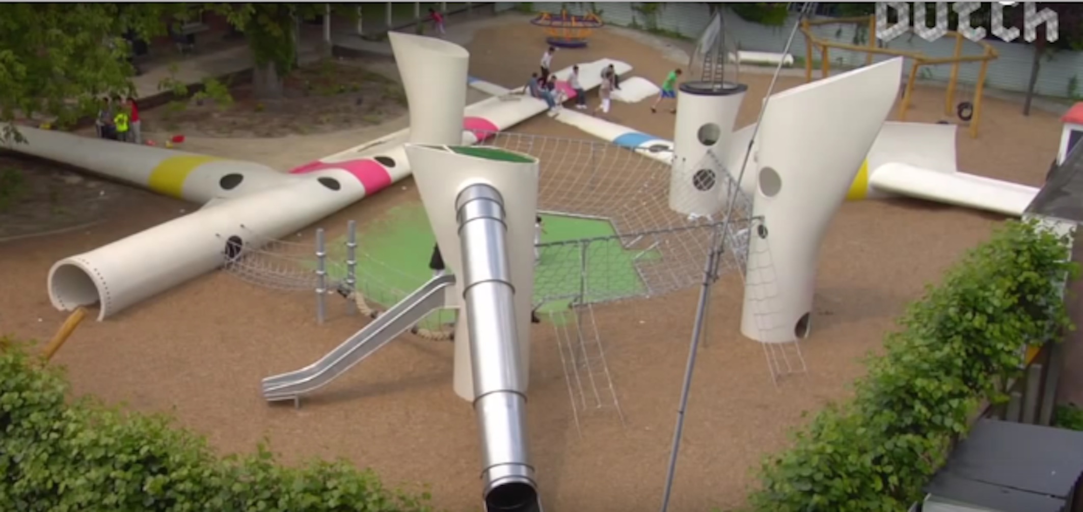 The wind turbines have also been put to use by the studio to build Wikado playground in Oude Noorden, Rotterdam. The structure uses the interiors of the blades as towers and tunnels while the thinner pieces are used as climbing structures. The structures are connected by bridges and climbing nets to create a maze-like design for maximum fun.