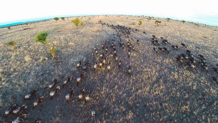 Burrard-Lucas developed his own drone technology by hanging a stabilized gimbal beneath the spinning blades to capture incredibly smooth footage. His customized drone, which he calls the “BeetleCopter,” supports cameras “ranging from a GoPro up to a Canon 5D Mark III.” The following footage of the Serengeti was recorded with a GoPro Hero 3+, with Burrard-Lucas claiming to film at distances up to a kilometre away from the drone. On his website, he contends that “These devices have incredible potential in wildlife filmmaking and photography; they are quieter and more manoeuvrable than a normal helicopter so they can get closer to animals with minimal disturbance.” After watching his footage from the Serengeti, I would tend to agree.