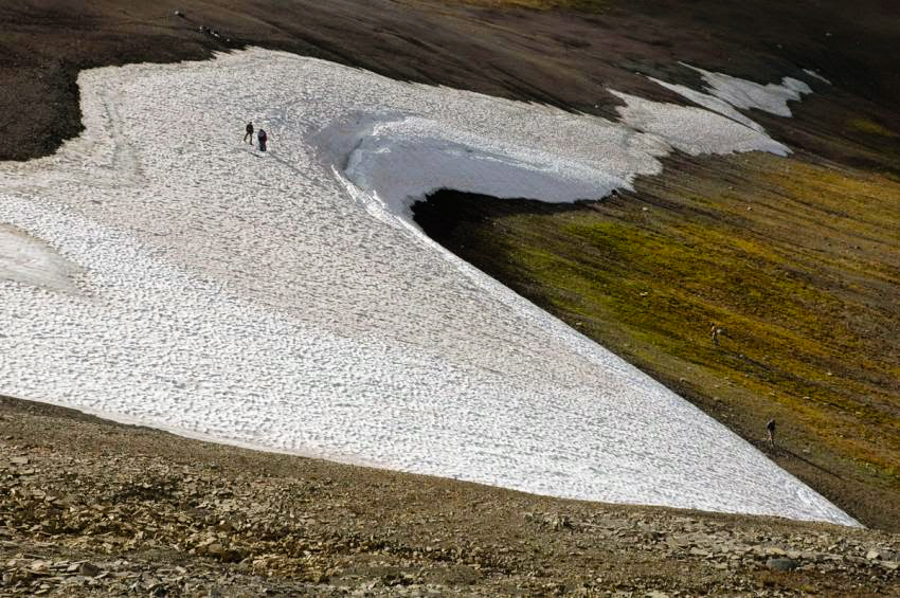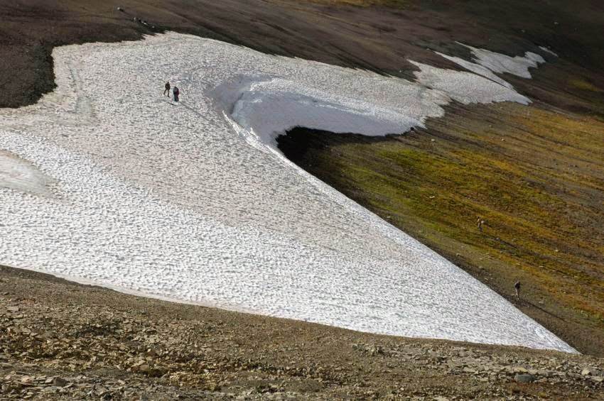 Caribou often gather on the ice patches in the Selwyn Mountains to cool down in the summer, because of this they are unique repositories of archaeological facts and biological specimens.