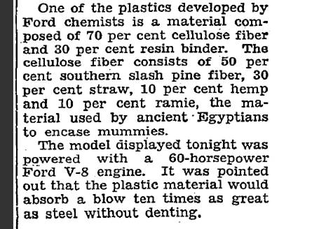 Though bodies made of fibreglass and other plastic-based coatings would emerge in the 1950s and onward, Ford’s formula was special in that it was made almost entirely from raw materials. That being said, it’s nice to see us now working on similar concepts, like 3D-printed cars. It’s just a little sad that we lost out on a lifetime worth of research into a greener solution.