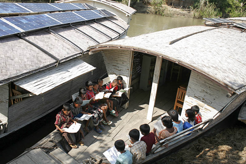 These boats are innovative and sustainable with solar panels on top of the boats to power the schools’ lights and computers.