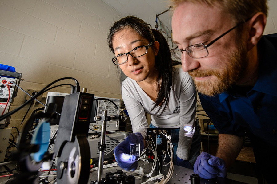 Michigan State has been able to succeed where others have failed by using a different method for gathering sunlight, which uses a “transparent luminescent solar concentrator.” The TLSC captures ultraviolet and infrared light—which are both non-visible—and then emits it as light to the edge of the panel, where strips of photovoltaic solar cells convert it into electricity. Essentially, it’s a filter for the traditional cells, removing the trappings of photovoltaic collection but retaining the benefits.
