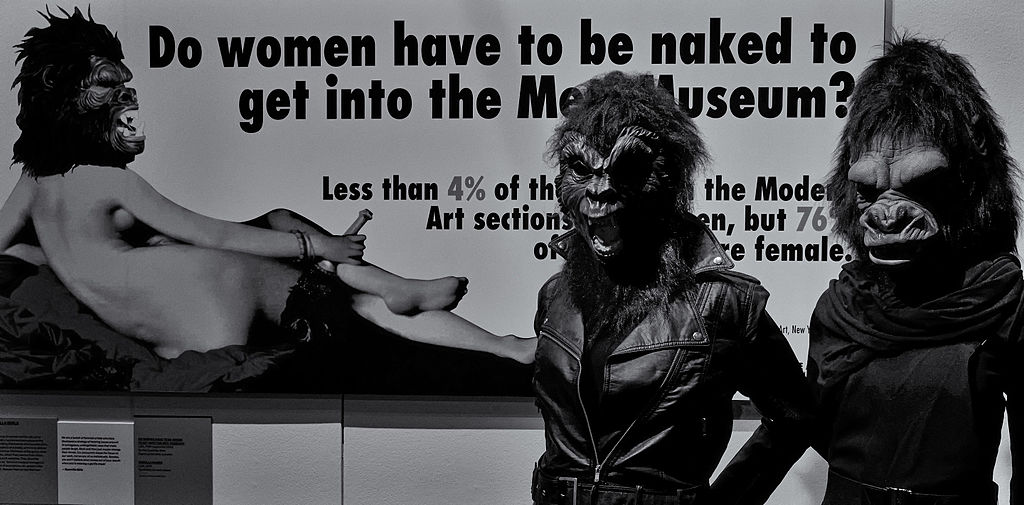 The Guerilla Girls are known for doing “Weinie Counts”, which consist of collecting data of art displayed in museums. This gave them their most eye-catching statistics. For example, only 5 per cent of artists are women, yet 85 per cent of nudes are female.