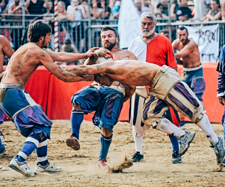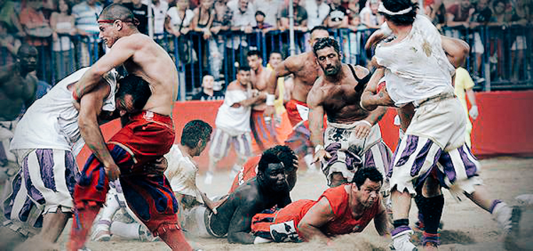 Every June at the Piazza Santa Croce, thousands gather to watch a centuries-old game where bitten-off ears, sucker punch-induced comas and limbs being snapped like kindling are expected casualties of the world’s most dangerous game. In Florence, Italy, Calico Storico is a form of historic football where players are allowed to use their feet and hands. The four teams of 27 come to satisfy their hunger for glory. The 4,000 fans come to satisfy their lust for blood.