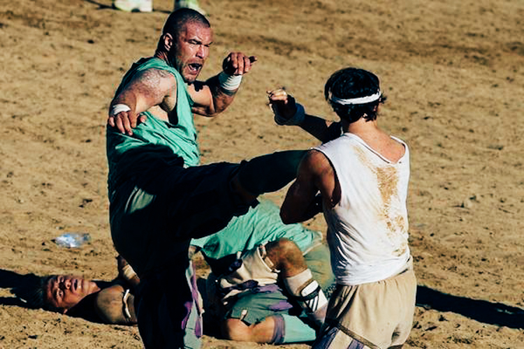 Two teams of 27 dressed in ancient uniforms, most adorned with sun-faded tattoos and beefy scars, face off in a game that draws influence from football, tribalism and bare-knuckle brawling.