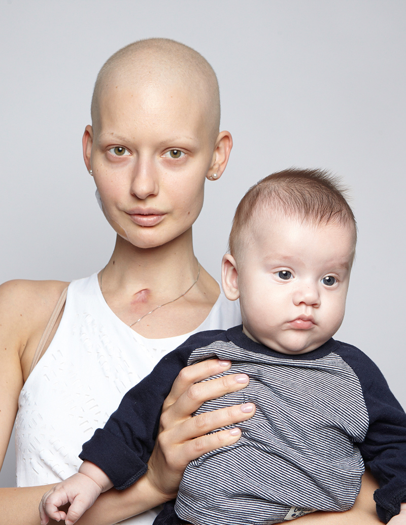 It took 16 hours of intensive surgery to remove her jaw and reconstruct it using her fibula and skin grafts from her right leg and shoulder. Ninety-five percent of her jaw was removed – that’s a full 17 centimetres of bone. She knew that this would put an end to her modeling career; and asked her husband to throw a blanket over the bathroom mirror during her recovery. It took her nearly a month to work up enough courage to stare at her own reflection.
