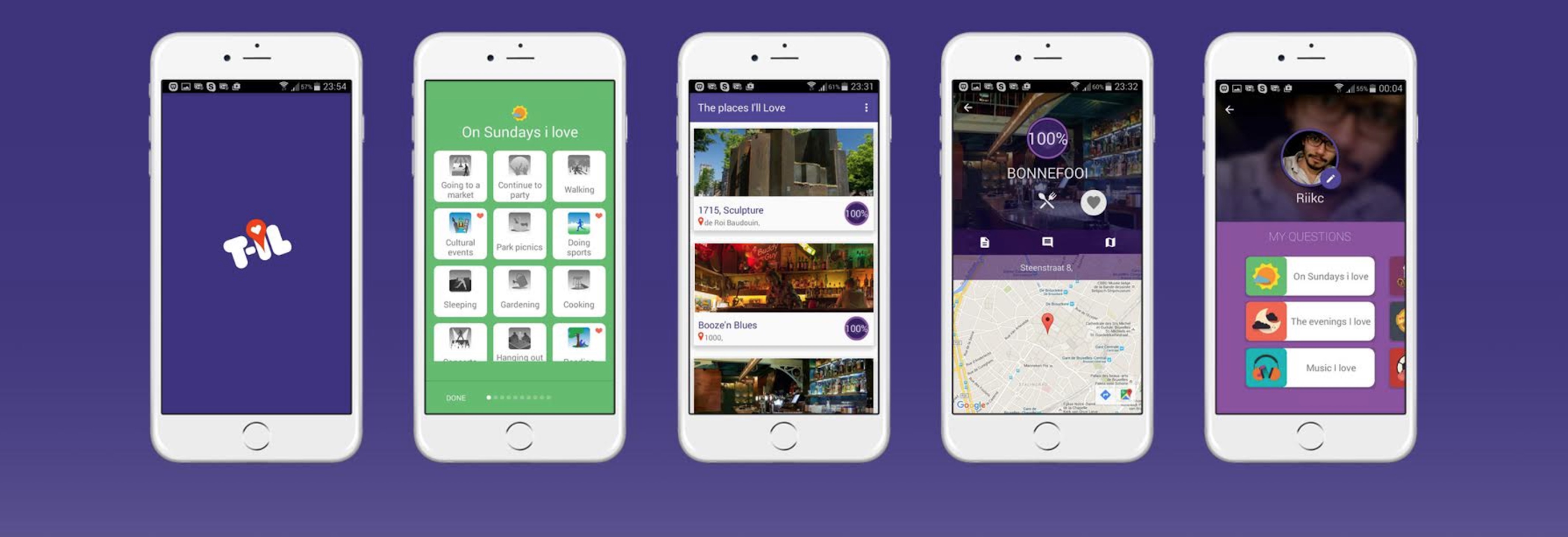 T-IL is a community app for people who love travel. When you sign in you answer 10 questions about your tastes: what do you do on Sundays, what drinks do you like, are you into sports, etc. Once you’re done, you start recommending some favourite spots in your city or places you’ve visited. Then when you travel to a new city, the destinations will be sorted by percentage affinity, based on how much you have in common with the person who recommended that spot. In other words, you see the spots that are most likely to fit you.