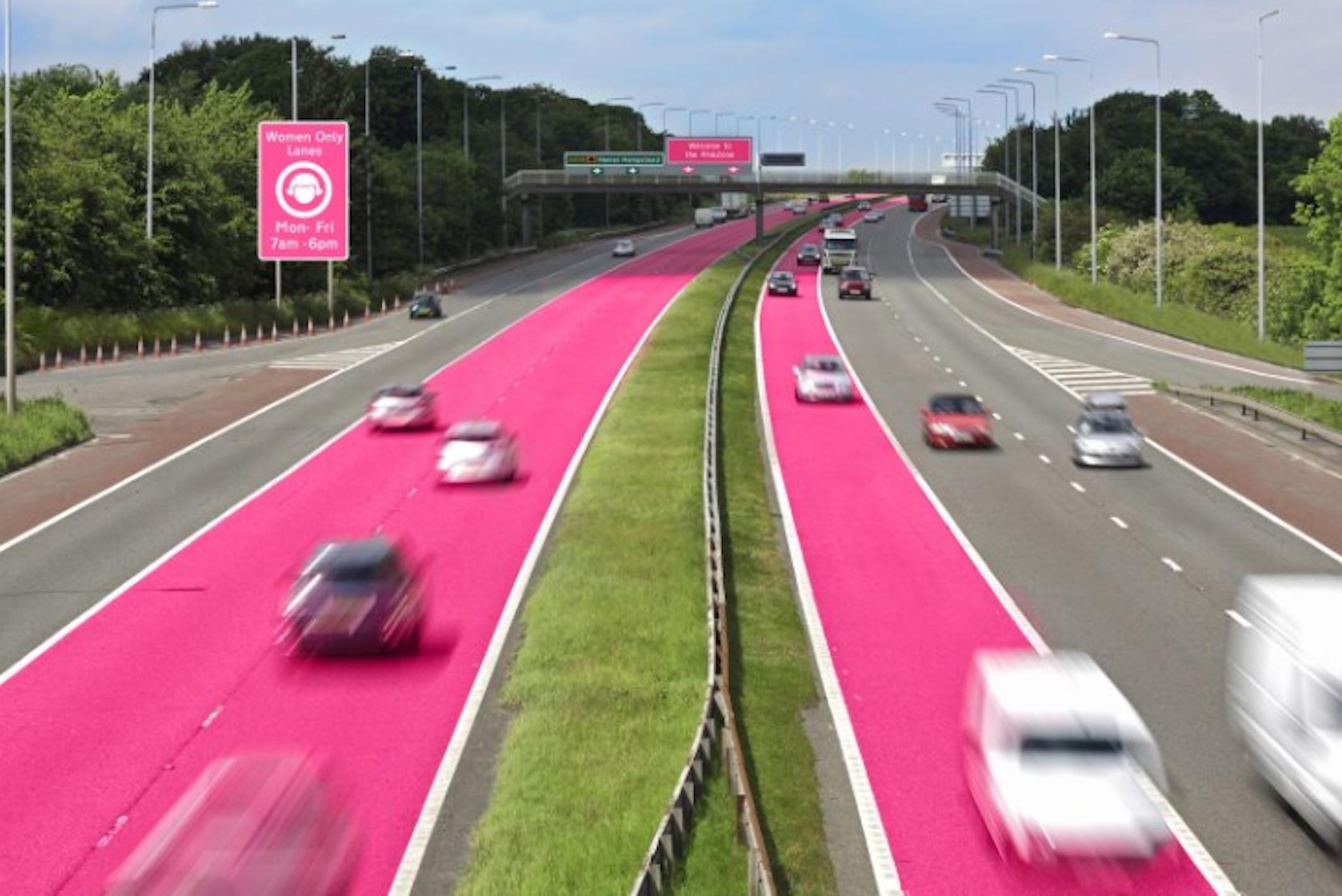 Sheilas’ Wheels, a “female-focused car insurer,” has just proposed to the UK the idea of PinkZones. Basically, PinkZones are separate driving lanes for female drivers. The lanes are supposed to increase safety and decrease the chance of women being harmed in a car accident.